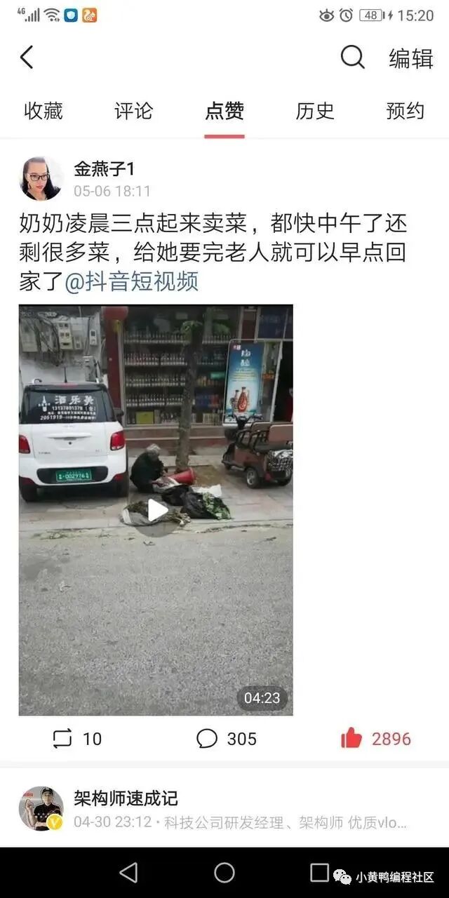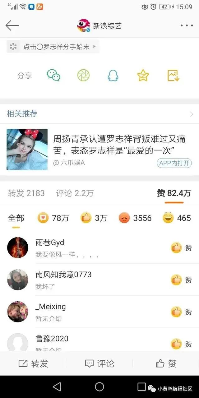 今日头条是没有地方可以看到点赞列表的,而微博点进去,详情页可以看到点赞列表,但是只会显示最近的几十条,没有分页显示。关注公众号小黄鸭编程社区,回复关键字手册,获取最新开发手册